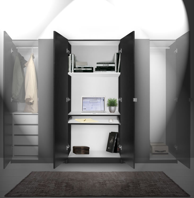 This Alta home office closet can function as an entire office by itself if necessary. The sliding shelf can hold a keyboard and mouse, turning the closet into an instant computer station!