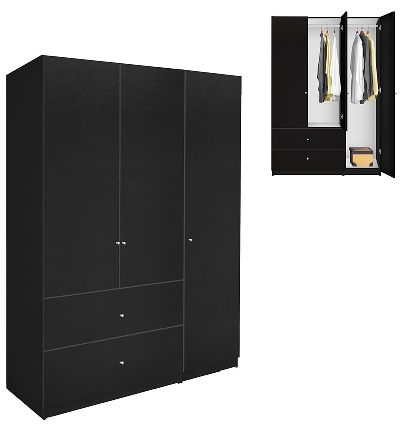 • Black Wardrobe Armoire 3 Door