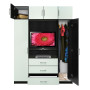 Narrow wardrobes on each side of the unit offer additional hanging storage.