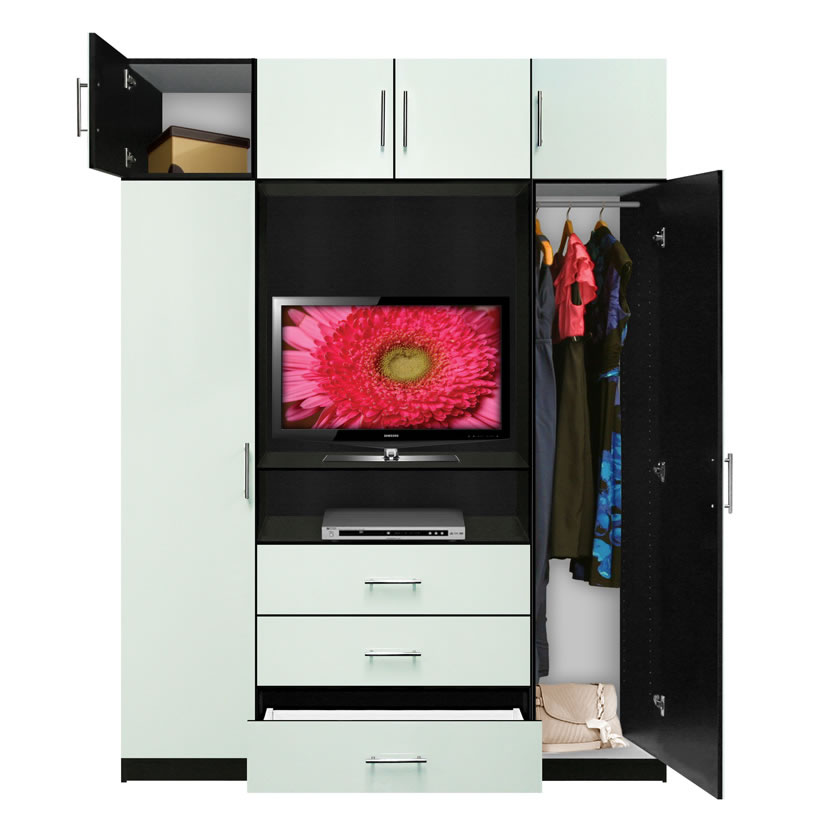 The multifunctional keystone of the Aventa Collection has at its core a 3-drawer armoire, along with space for a TV in the bedroom and the components that go along with it.