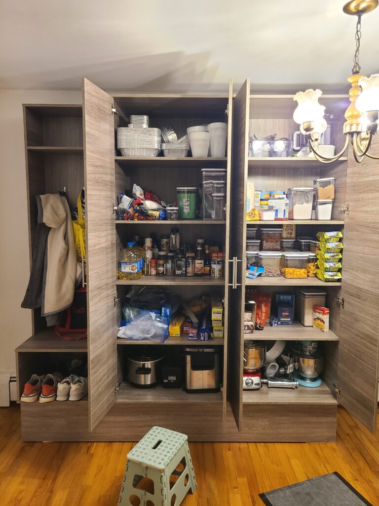 Meanwhile, the attached pantry directly across from the kitchen vastly increases their kitchen storage space. The easily adjustable shelves allow for even the largest appliances to be stored easily within this unit.