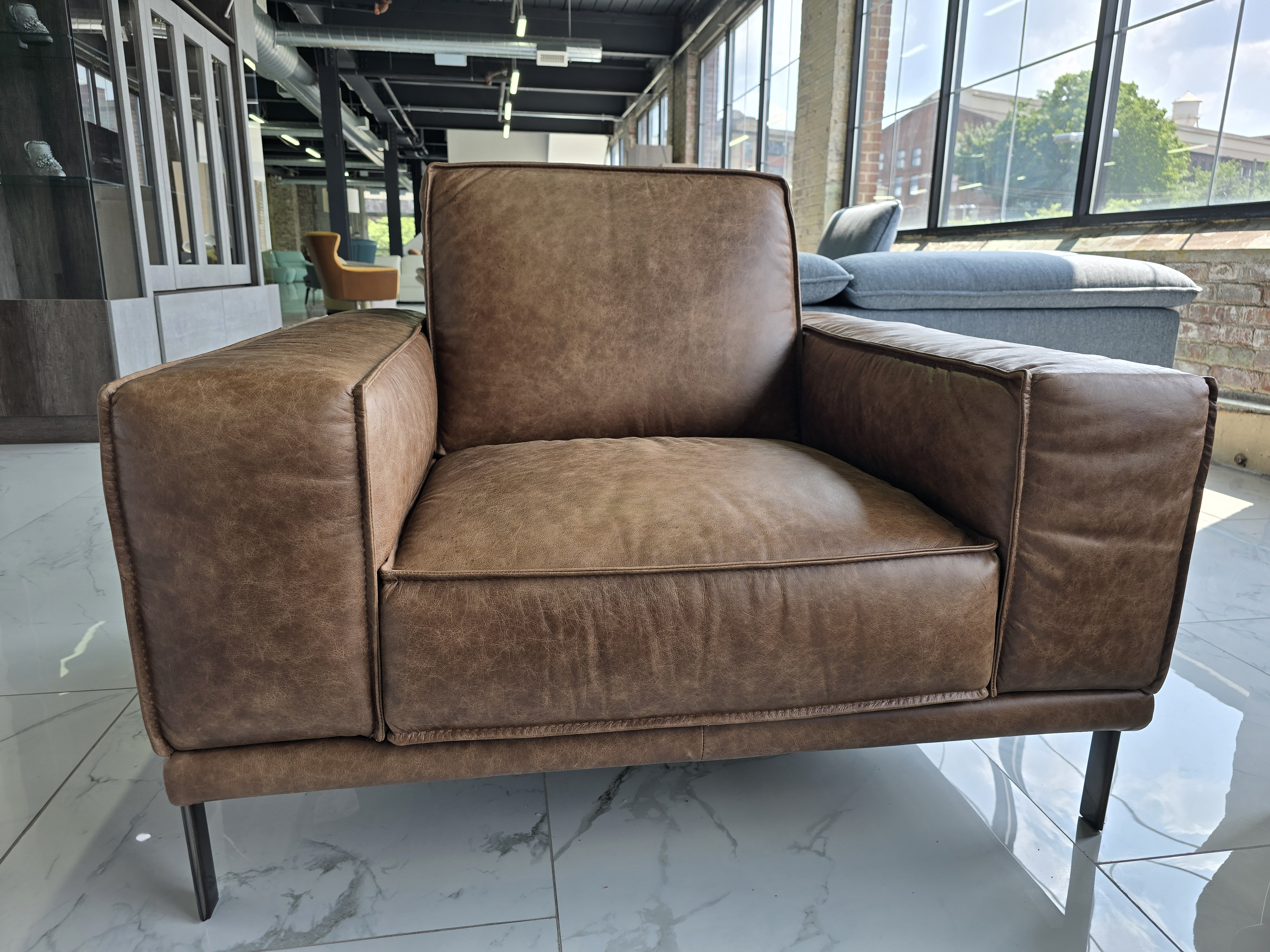 This is the leather chair you've been searching for. Crafted in Italy, it is made with a high quality leather that offers unparalleled beauty and comfort. The set is available in multiple colors to perfectly match and enhance any space you may have for it.